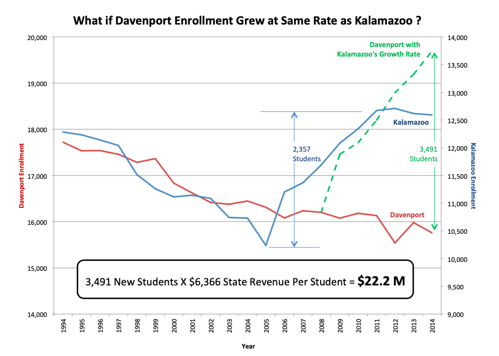 What if we punched back at all the social engineering that made urban decline the norm for a Midwest manufacturing city and grew the city faster than those bloodsucking, freeloading suburbs? See: Davenport, Iowa (2001 – 2015).